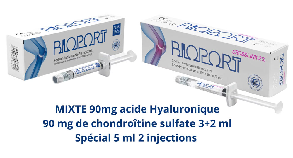 Chez BIOPORT, nous comprenons les défis auxquels sont confrontées les personnes atteintes d’arthrose, et nous nous engageons à répondre à ces préoccupations avec nos produits innovants d’acide hyaluronique. BIOPORT plus 1,5% (30mg d’acide hyaluronique 2ml) et BIOPORT CROSSLINK 2% (60mg d’acide Hyaluronique et 90 mg de Chondroïtine sulfate sodium 3ml)